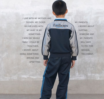The students’ stories capture the gamut of societal issues that we face today: violence, immigration, the demise of the nuclear family, global hunger, and the impact of the media and popular culture. The combination of frontal and reverse portraits allowed for the development of both personal and universal stories and derived from the subject care-taker’s reactions to photography in each country. In the US, photographing from the front can be problematic because of privacy issues. In China, it is considered disrespectful to photograph from the back. In India, parents and teachers made no objections to either frontal or back portraits. In all of the portraits across the spectrum of countries, the children are presented as individuals; however, their stories speak to greater pervasive truths and problems within our society. Told in their own words, these children’s stories touch on some of our most pressing social issues and common human experiences.